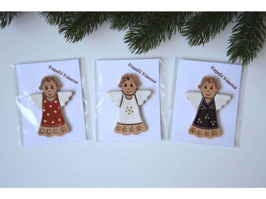 Keramický ručně vyrobený andílek s kartičkou Andělské Vánoce
