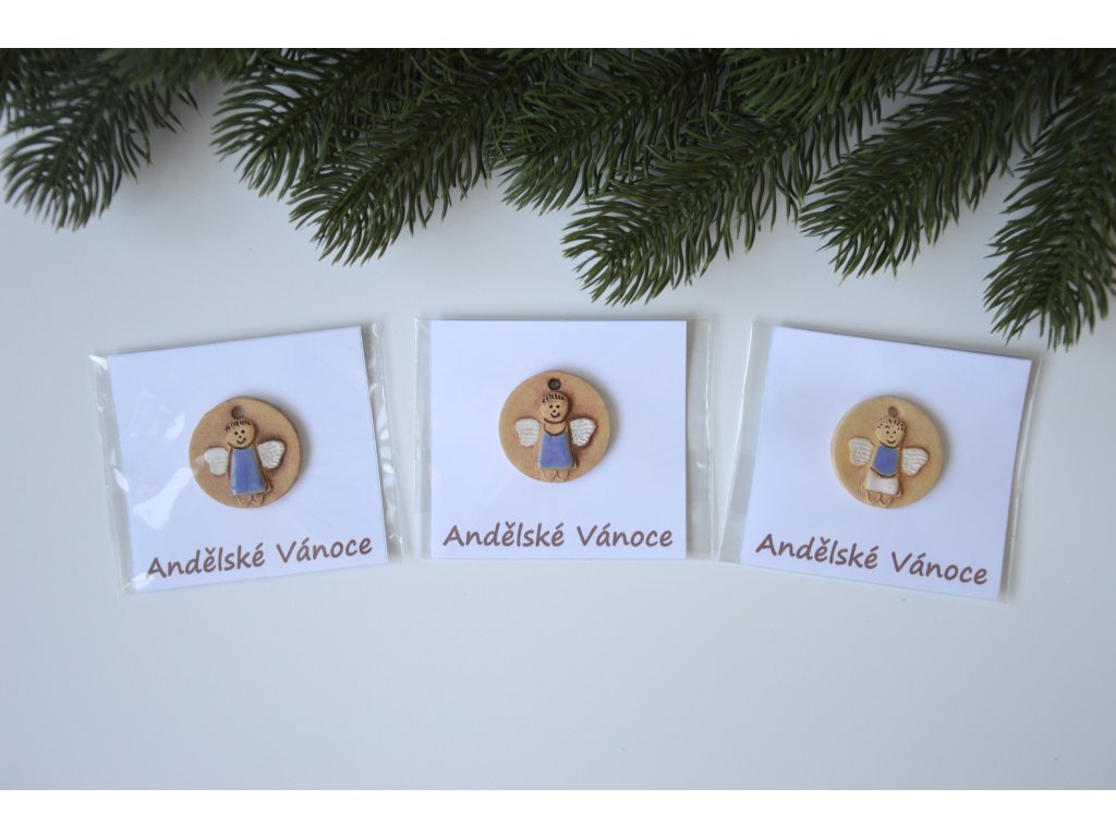 Keramický ručně vyrobený andílek s kartičkou Andělské Vánoce.
