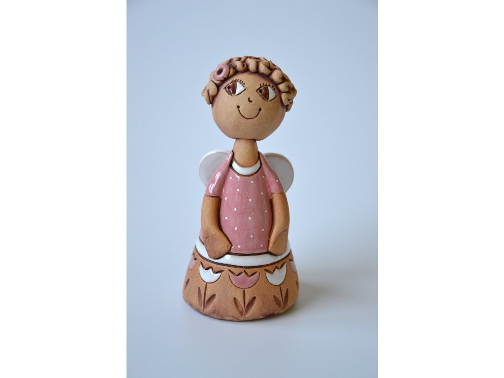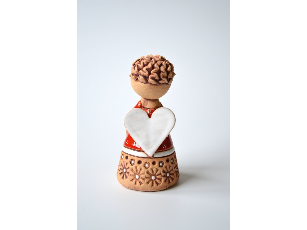 Keramický andílek s bordurou a křidélky v podobě srdíčka.