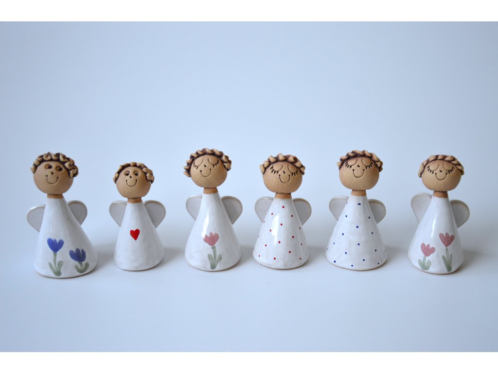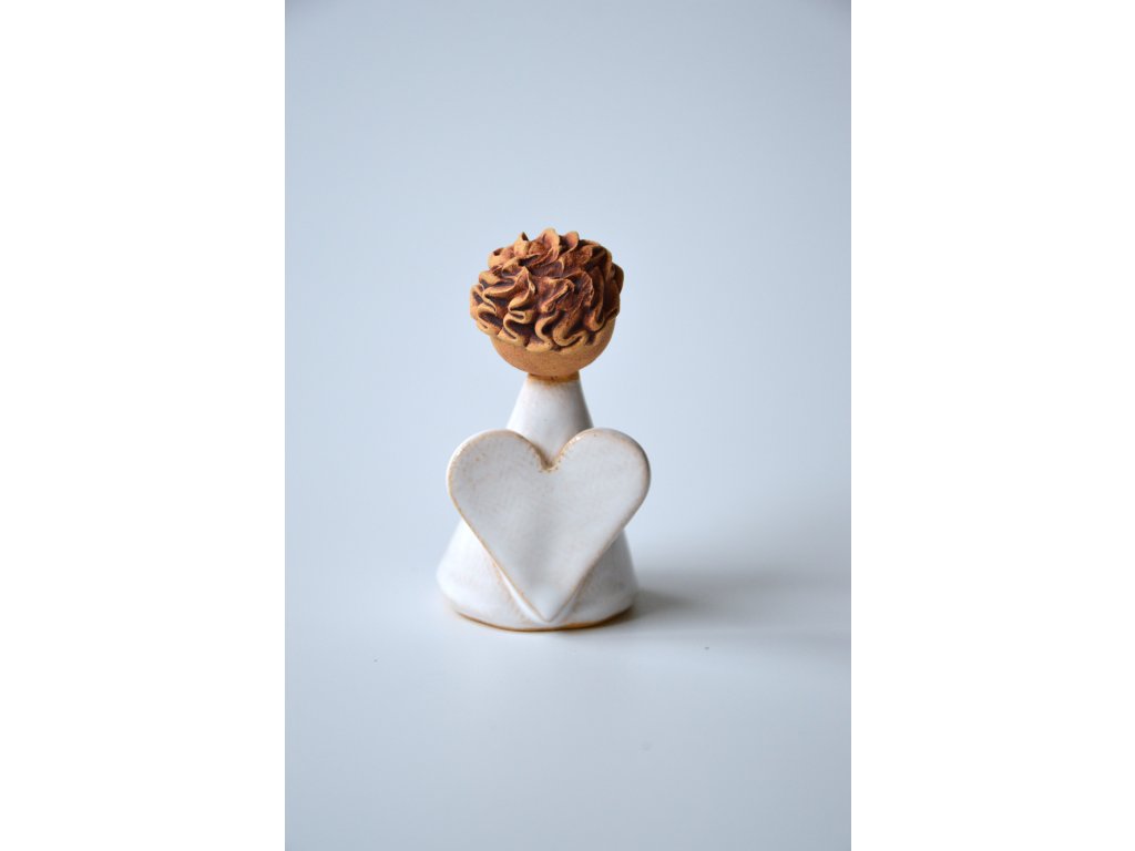 Malý keramický andílek s křidélky ve tvaru srdíčka.