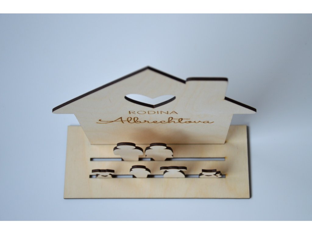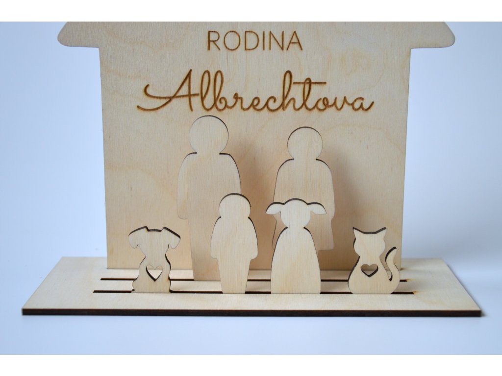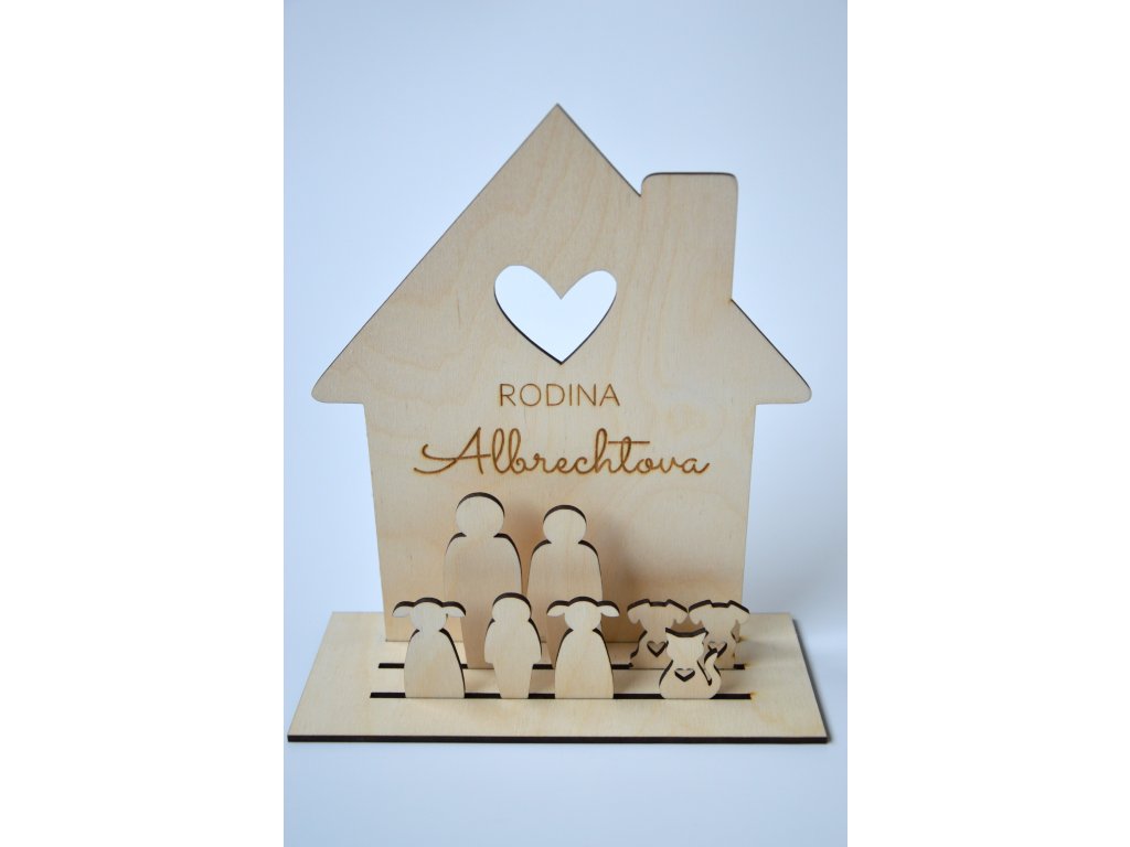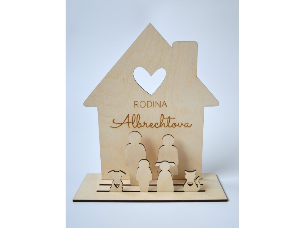 Chcete darovat krásný personalizovaný dárek nebo si vyzdobit svůj domov originální dřevěnou dekorací, kterou si můžete vystavit do obývacího pokoje, ložnice, předsíně nebo kamkoliv ve vašem domě? Rádi Vám vyrobíme dřevěný domeček se jménem Vaší rodiny ♥ Figurky si můžete libovolně poskládat a sestavit podle členů rodiny včetně těch zvířecích :-)