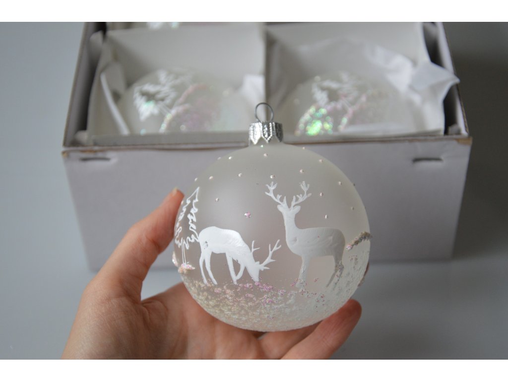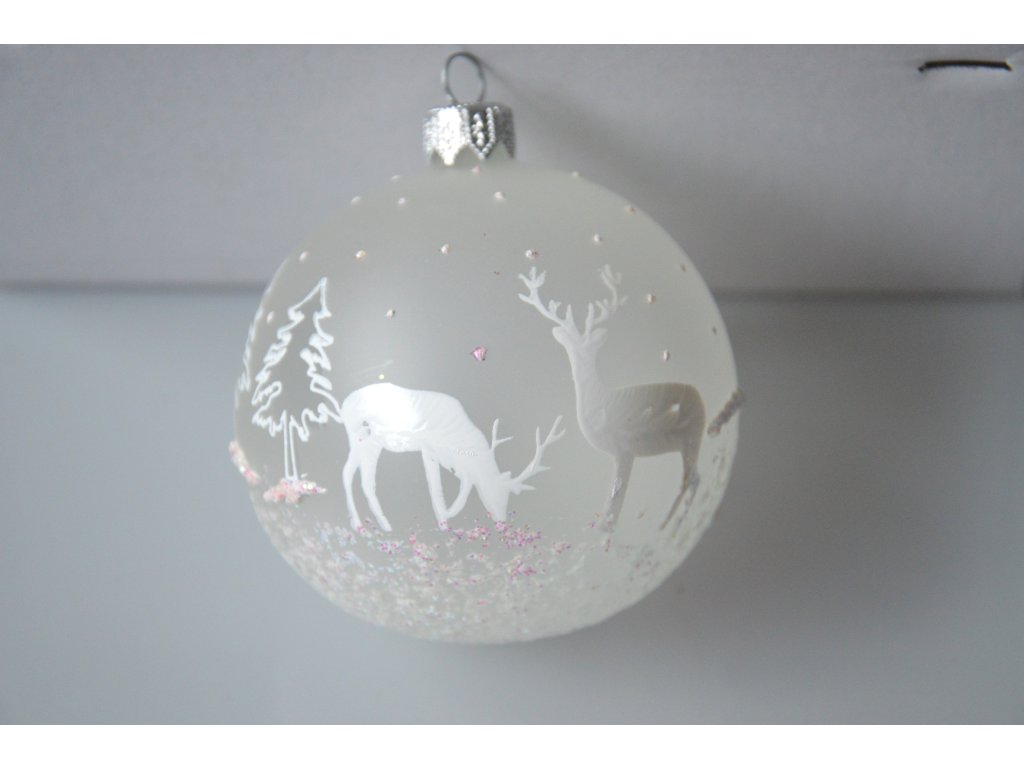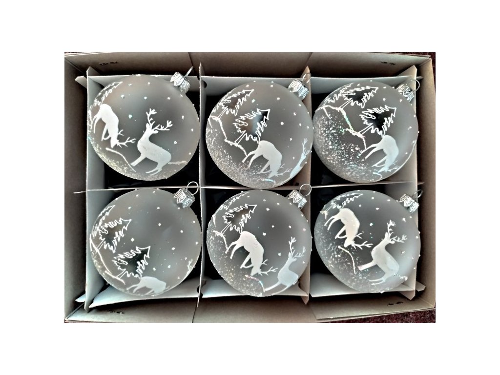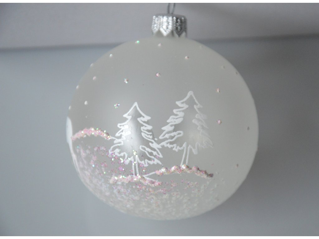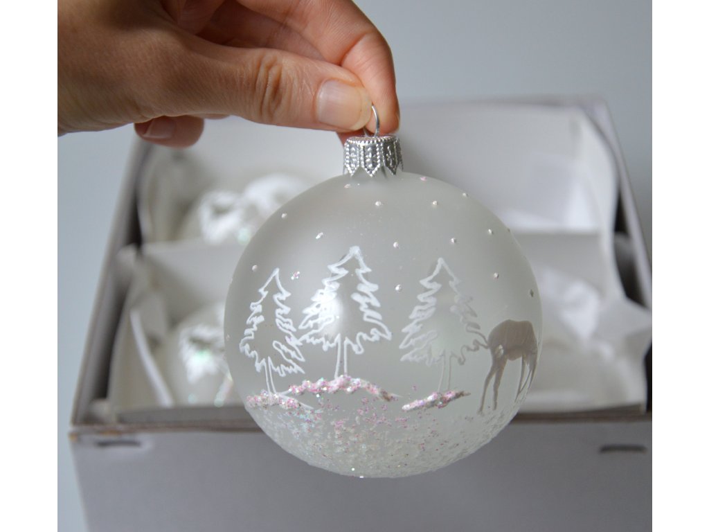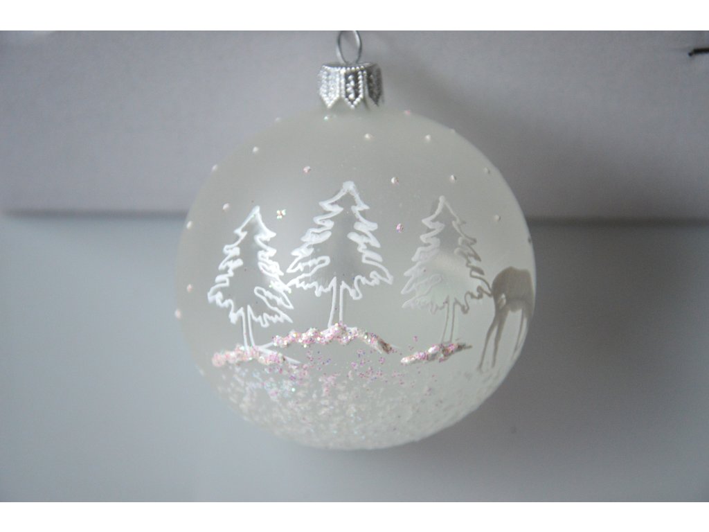 Barva: průhledná, bílá, mat, středem dekor stromy se soby.